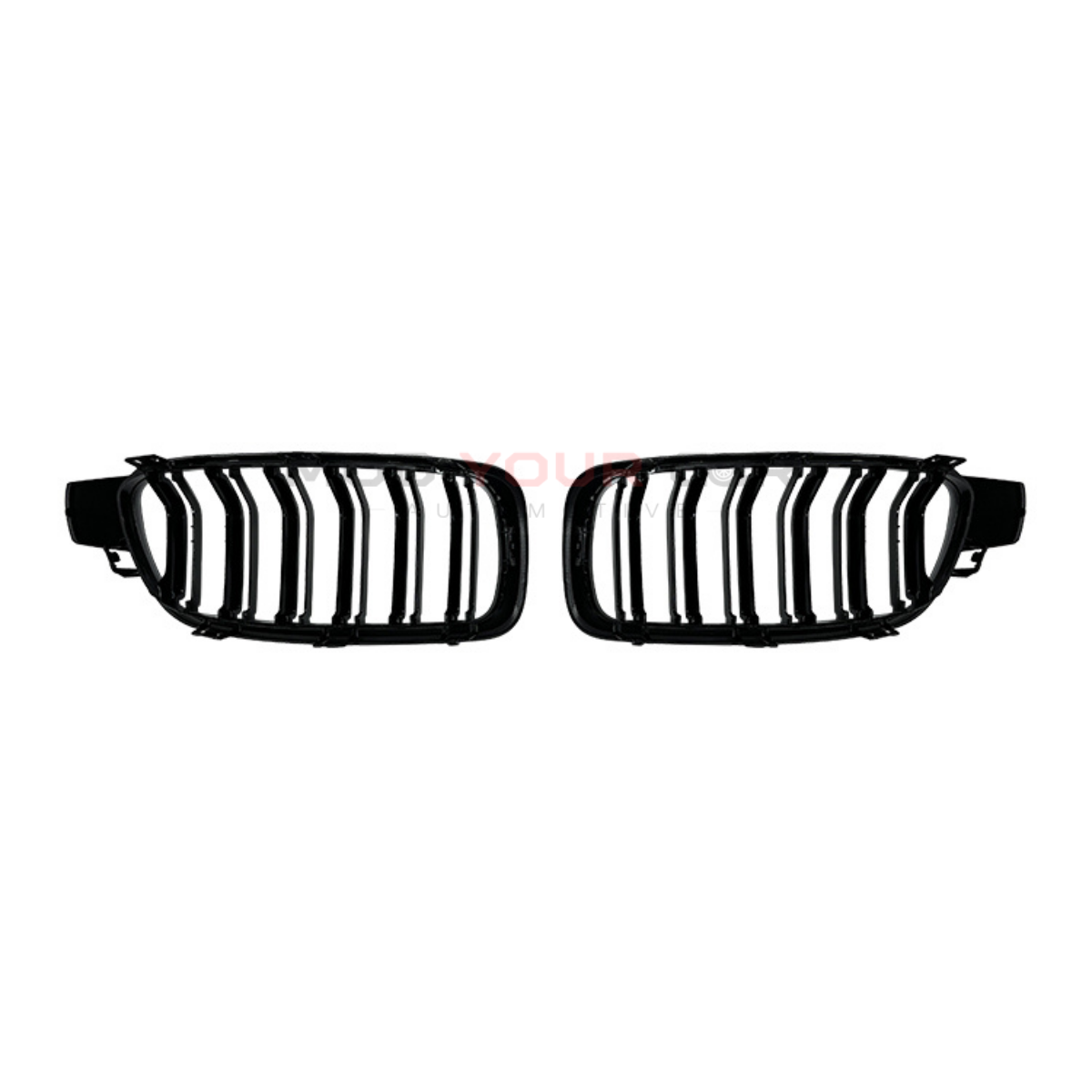 2012-2018 BMW 3 Series F30 Front Grille (No Logo) – Gloss Black Dual Slat Design
